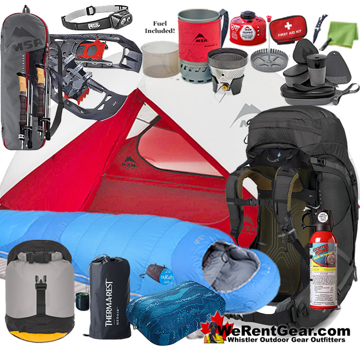 Hike into paradise and camp in beautiful Whistler and incredible Garibaldi Park. With the best quality and highest rated hiking gear money can buy, you will have the trip of a lifetime. We do all the work and you have all the fun! We rent the best quality and highest rated gear on the market. MSR tents, Osprey backpacks, MSR WindBurner Stove Systems, Rab Ascent 700 sleeping bags, Therm-a-Rest XTherm MAX sleeping pads, MSR Evo Ascent snowshoes and more. We also rent complete hiking gear kits. We can equip one person, couples or large groups with everything you need except food and water! We are proud to be Whistler's best source for rental hiking gear. We have the best gear, the best prices and best service!